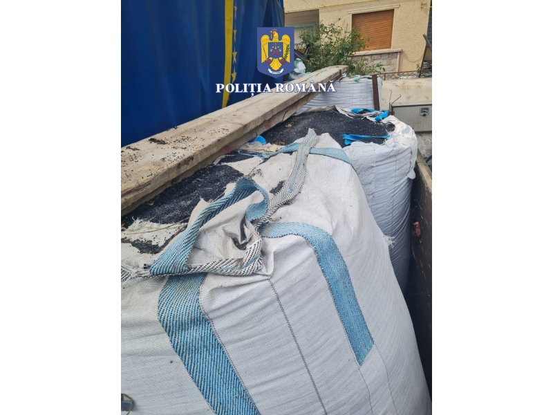 În 6 saci au fost găsite aproximativ 6.000 de kilograme de cauciuc măcinat, susceptibil a proveni din tocarea de furtune din cauciuc.