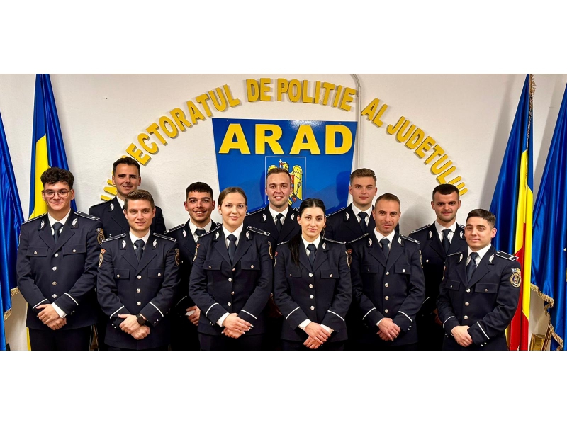 Începând de mâine, noii noștri colegi își vor desfășura activitatea la Poliția Municipiului Arad, polițiile orașelor Sebiș și Pecica, în cadrul Secției 8 Rurală Săvârșin (posturile de poliție Bata, Bârzava și Săvârșin, precum și în cadrul Serviciului Criminalistic.